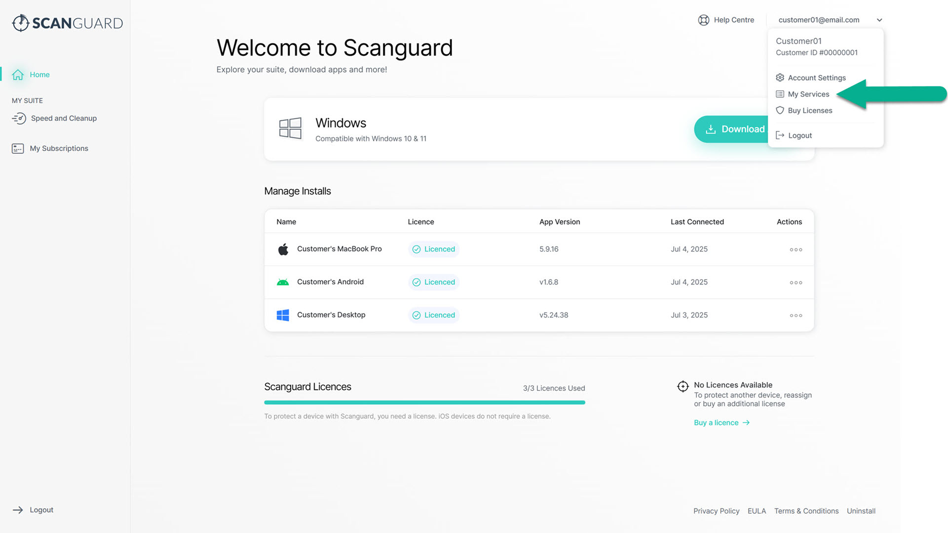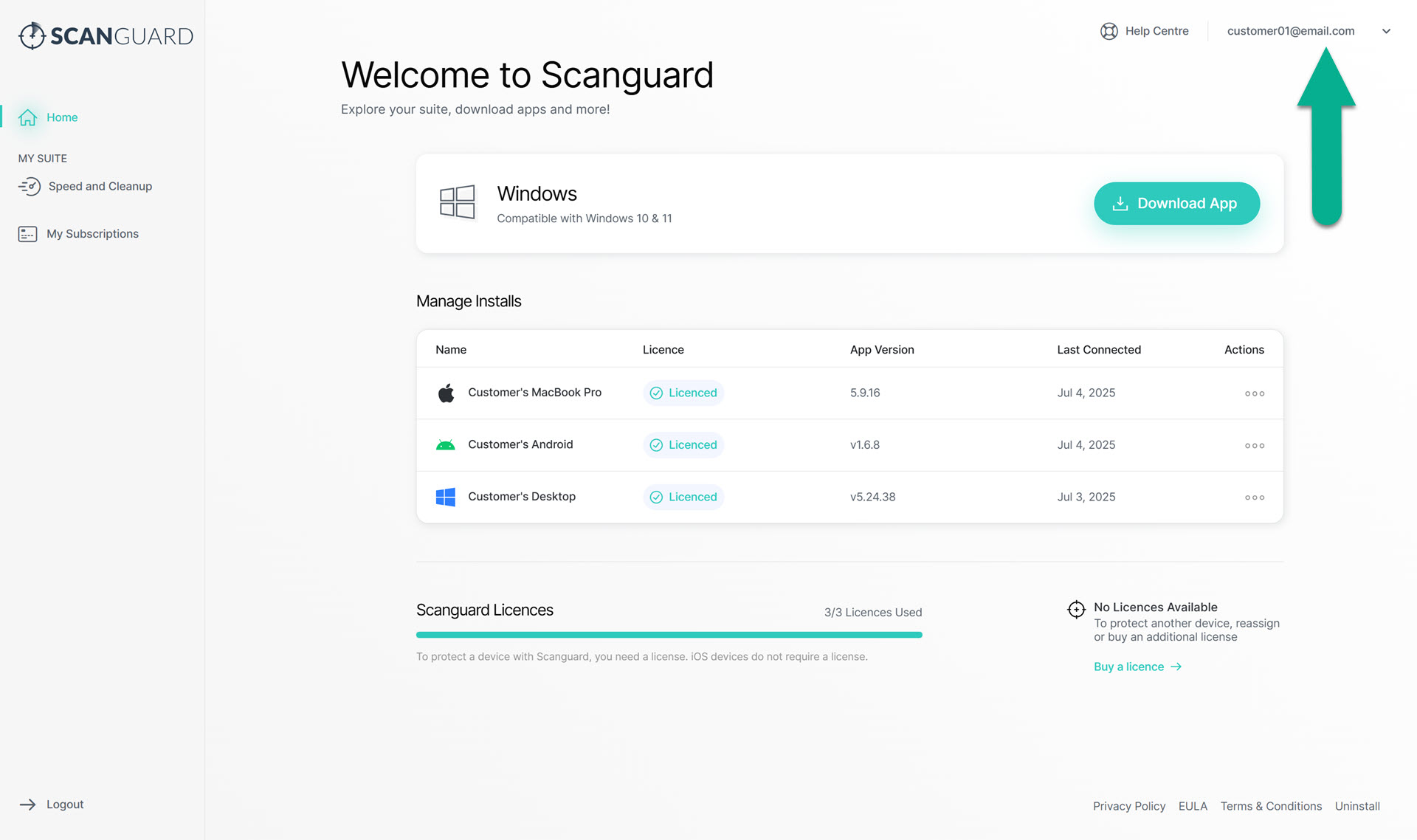 In the top-right corner of the dashboard, find your email address or the menu icon.